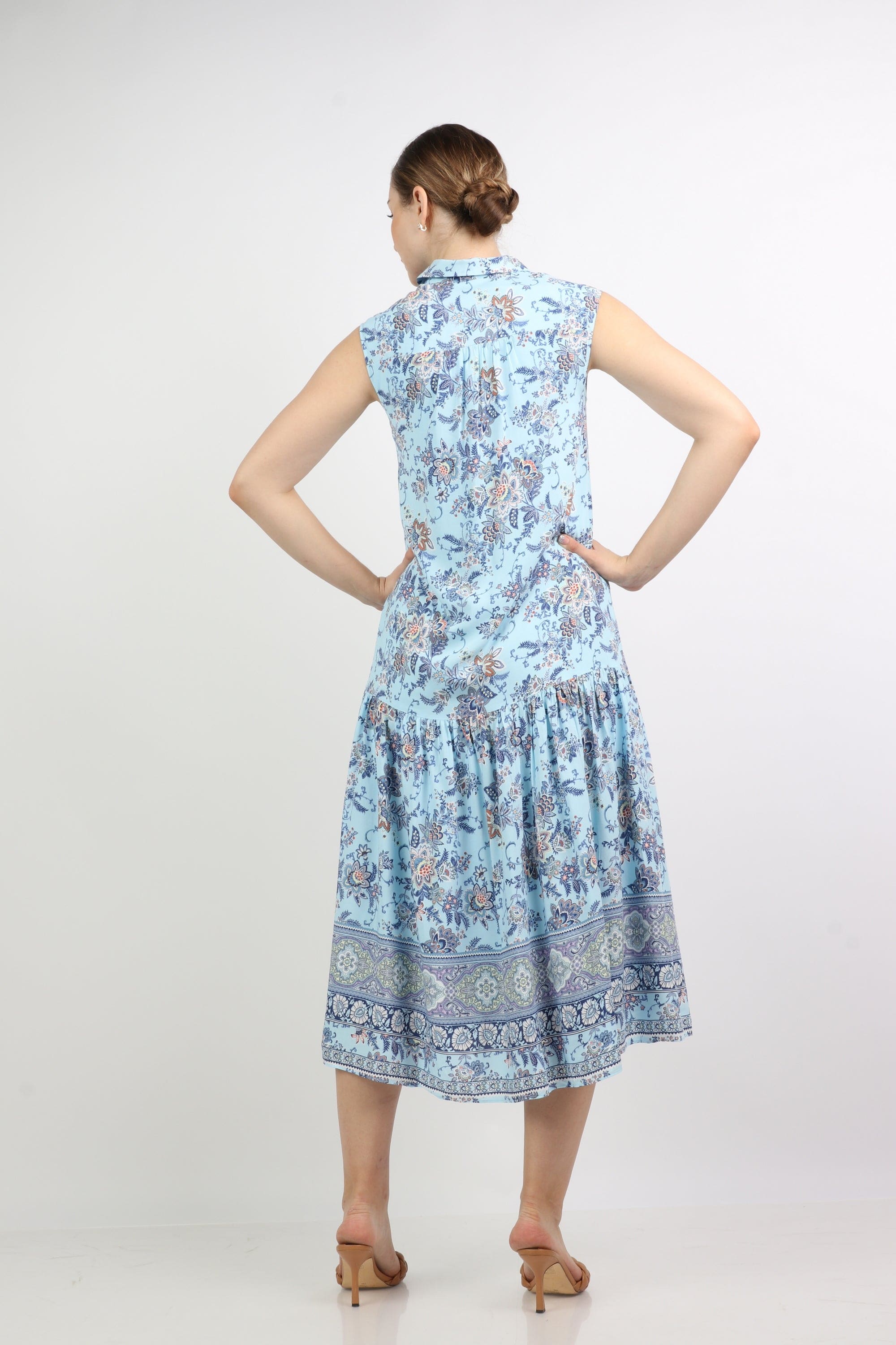 لما تريدي فستان صيفي مريح وعصري، هذا الفستان بقصة A ميدي هو خيارك المثالي. قصة عادية تمنحك حرية حركة وأناقة بسيطة، والياقة القميص تضيف لمسة كلاسيكية بينما التصميم بلا أكمام يبقي الإطلالة خفيفة للصيف. النقشة الزهور بالأزرق الفاتح تمنح حس منعش ورومانسي؛ ستحبين كيف يتحرك معك عند المشي. الخامة الأساسية من 100% بوليستر مع ذكر بطانة 100% رايون في المواصفات، لكن الطراز متوفر بدون بطانة، بسماكة متوسطة تناسب أيام الصيف الدافئة. الإغلاق بزر يسهل اللبس والخلع، لا جيوب ولا حزام لتصميم أنيق وبسيط. مثالي للخروجات اليومية، لقاءات قهوة، أو خروجات رومانسية مع لمسة مريحة وعصرية. اعثري على مقاسك في فاشن السعودية وأضيفي هذه القطعة المتنوعة إلى خزانة ملابسك اليوم.