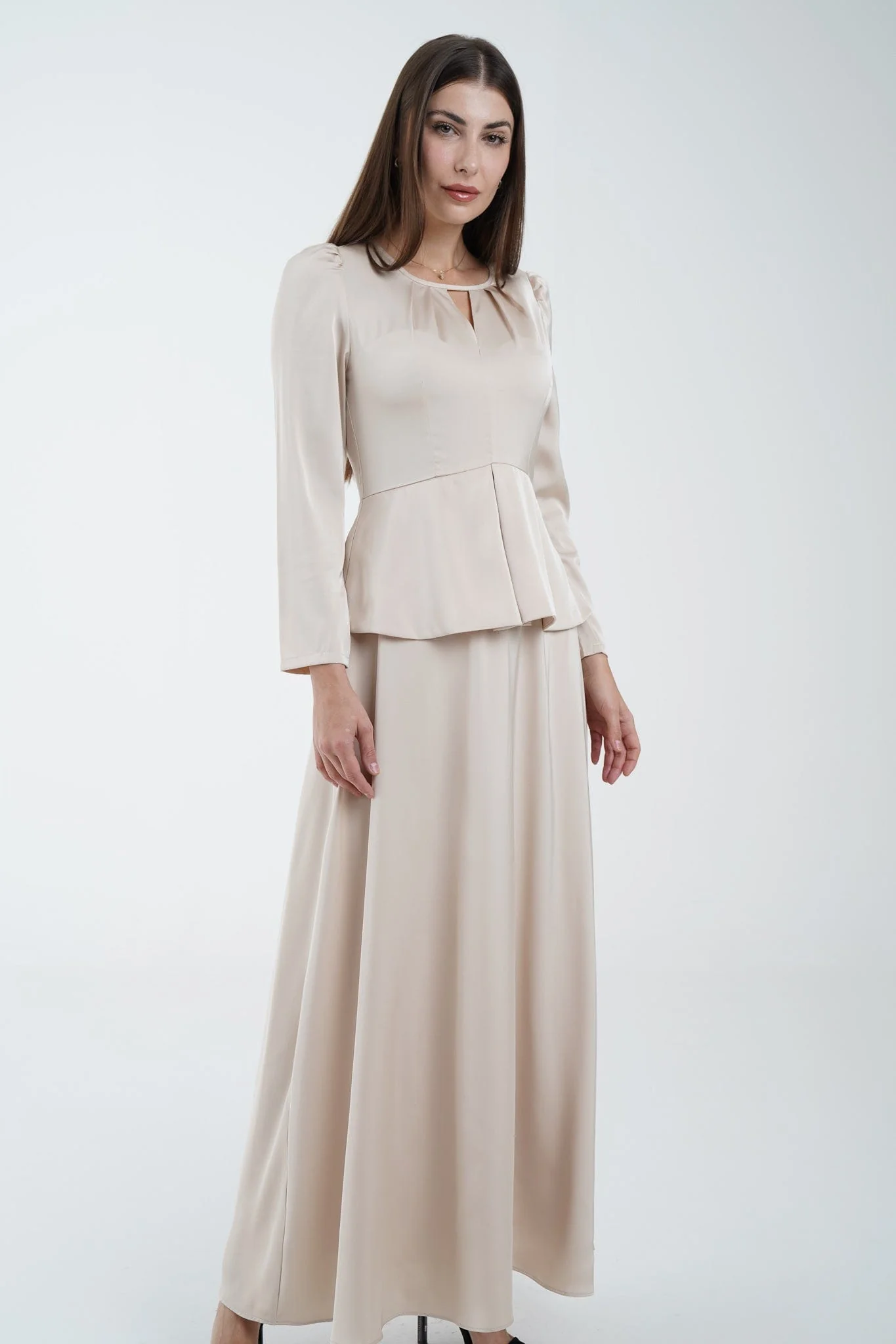 فستان ماكسي مخصر رقبة كم طويل