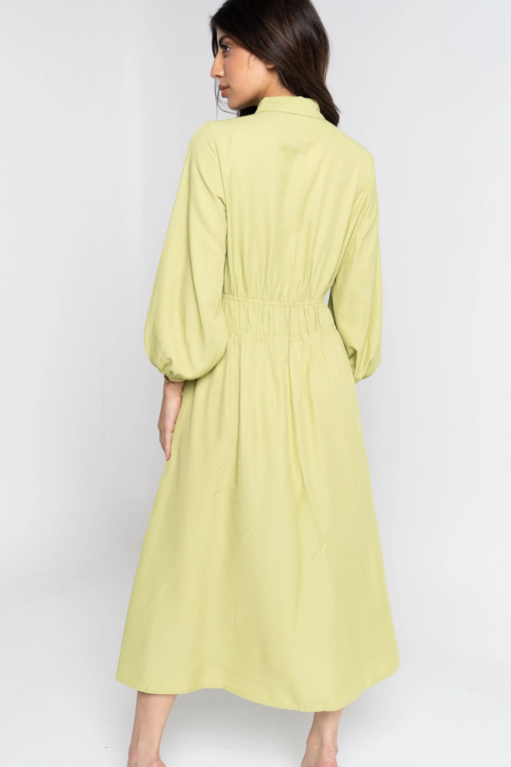 فستان ميدي 3/4 كم مكشكش من الخصر بياقة