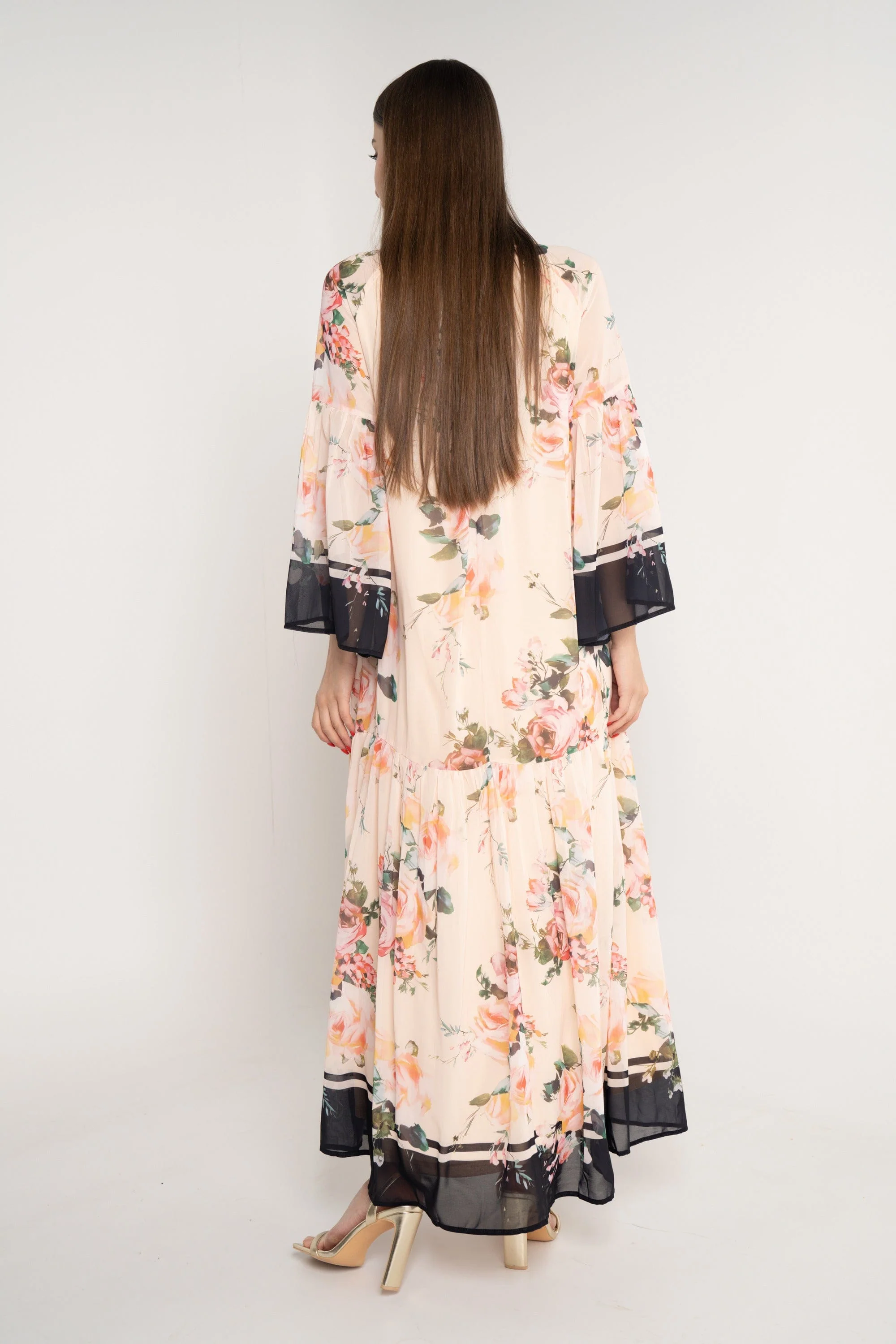 - طول ماكسي مع نقشة زهور متعددة الألوان لمنظر حيوي