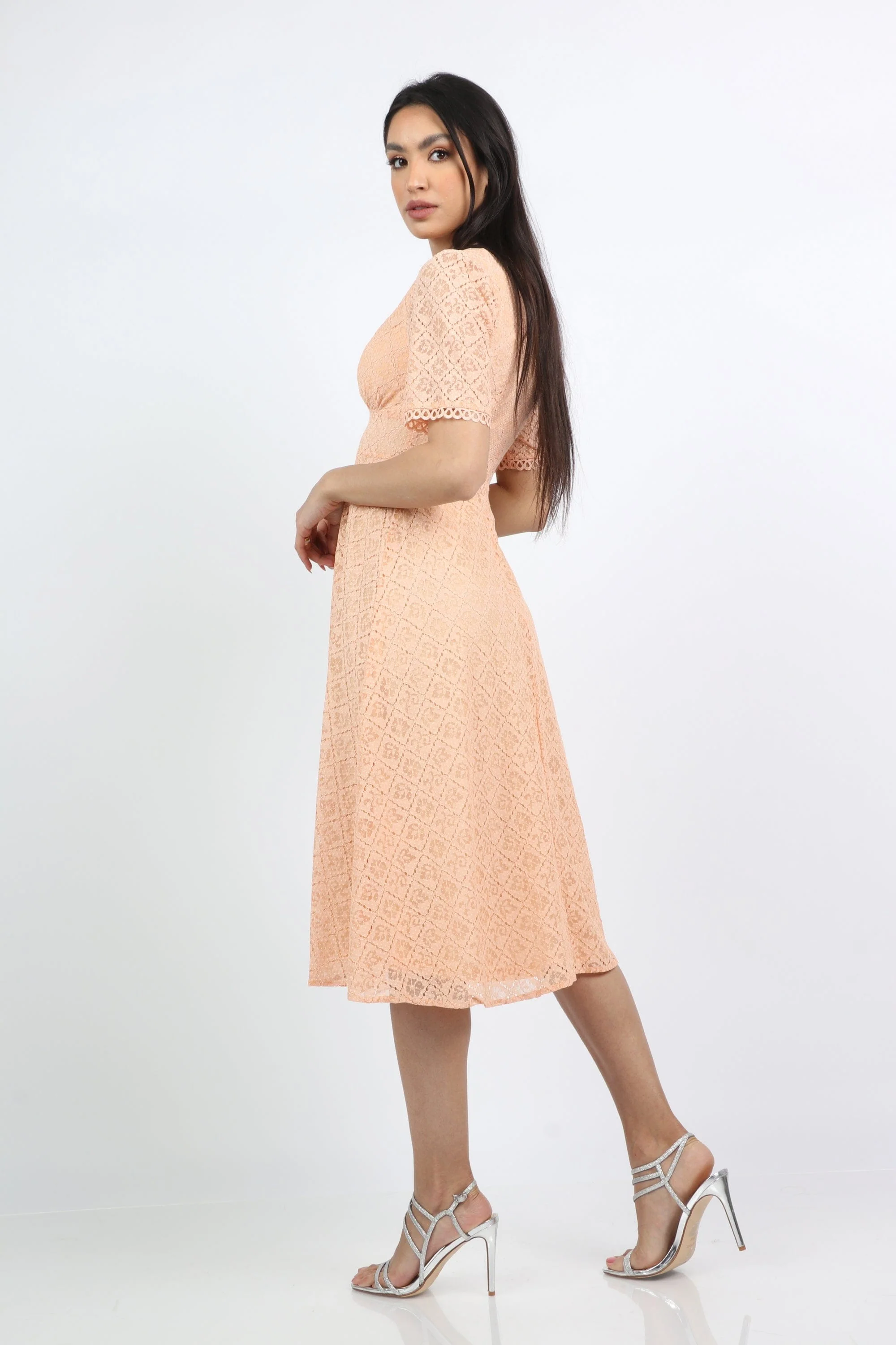 فستان ميدي قصير الأكمام بياقة سبعة