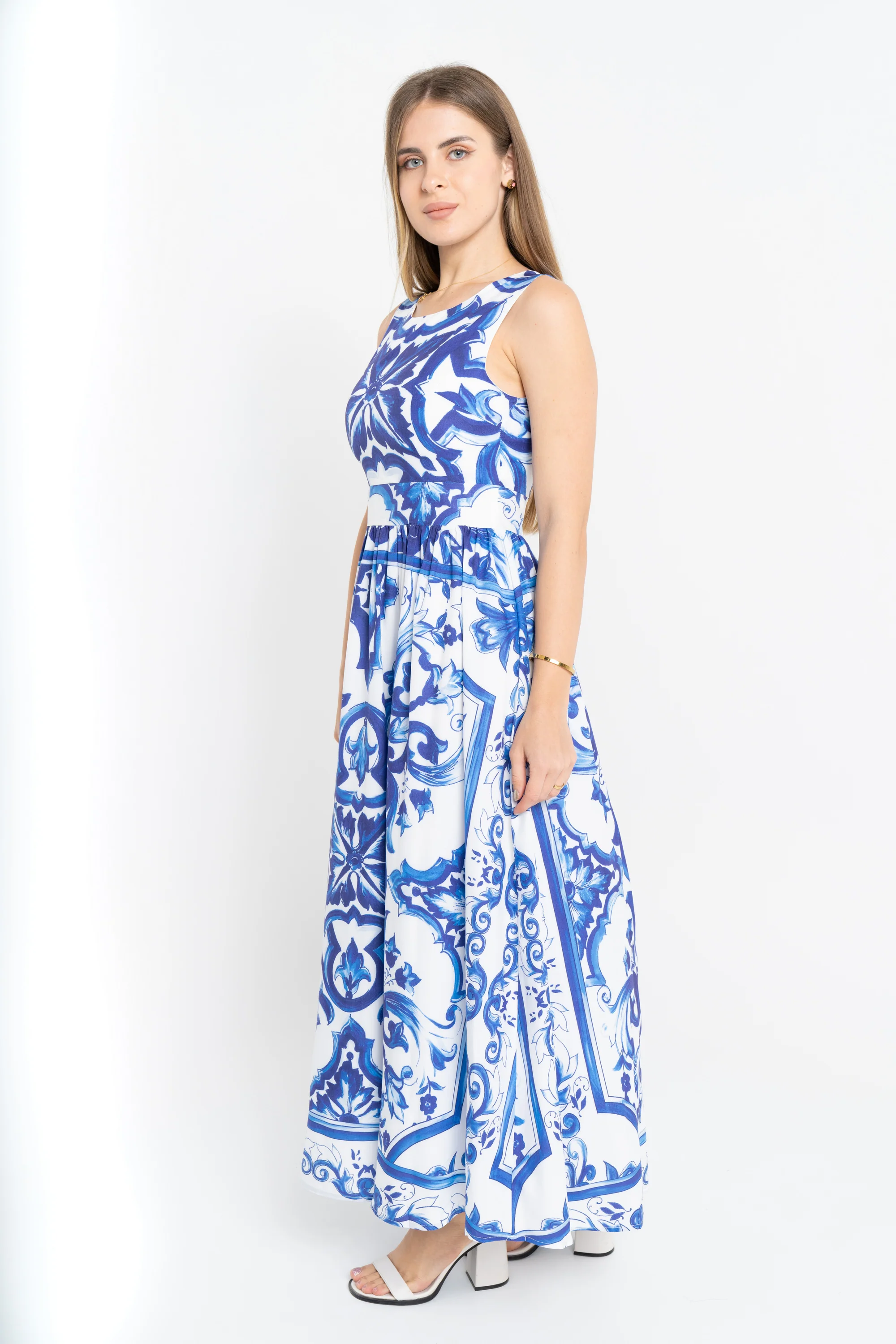 ستحبين هذا الفستان لما يجمع بين طلة صيفية مواكبة للموضة وراحة يومية. هذا الفستان ماكسي منقوش بقصة A تمنح الحركة والعرض عند الأسفل بطريقة أنثوية، وياقته مستديرة وتصميمه بلا أكمام ليبقيكِ منتعشة في الأيام الحارة. مصنوع من بوليستر 100% خفيف ومتين، مثالي للخروجات والكافيهات والنزهات المسائية. السماكة متوسطة فلا يشعر بالبرودة لكنه مناسب للصيف، والفستان بدون جيوب وبدون حزام لتصميم أنيق وبسيط. ستلاحظين كيف يتحرك معك عند المشي، وهو خيار رائع لإضافة صندل مسطح أو حذاء بكعب منخفض حسب المناسبة. مناسب لخزانة ملابسك الصيفية ويمنحك طلة أنثوية ومريحة في الوقت نفسه. اعثري على مقاسك في فاشن السعودية وأضيفي هذه القطعة المتنوعة إلى خزانة ملابسك اليوم.