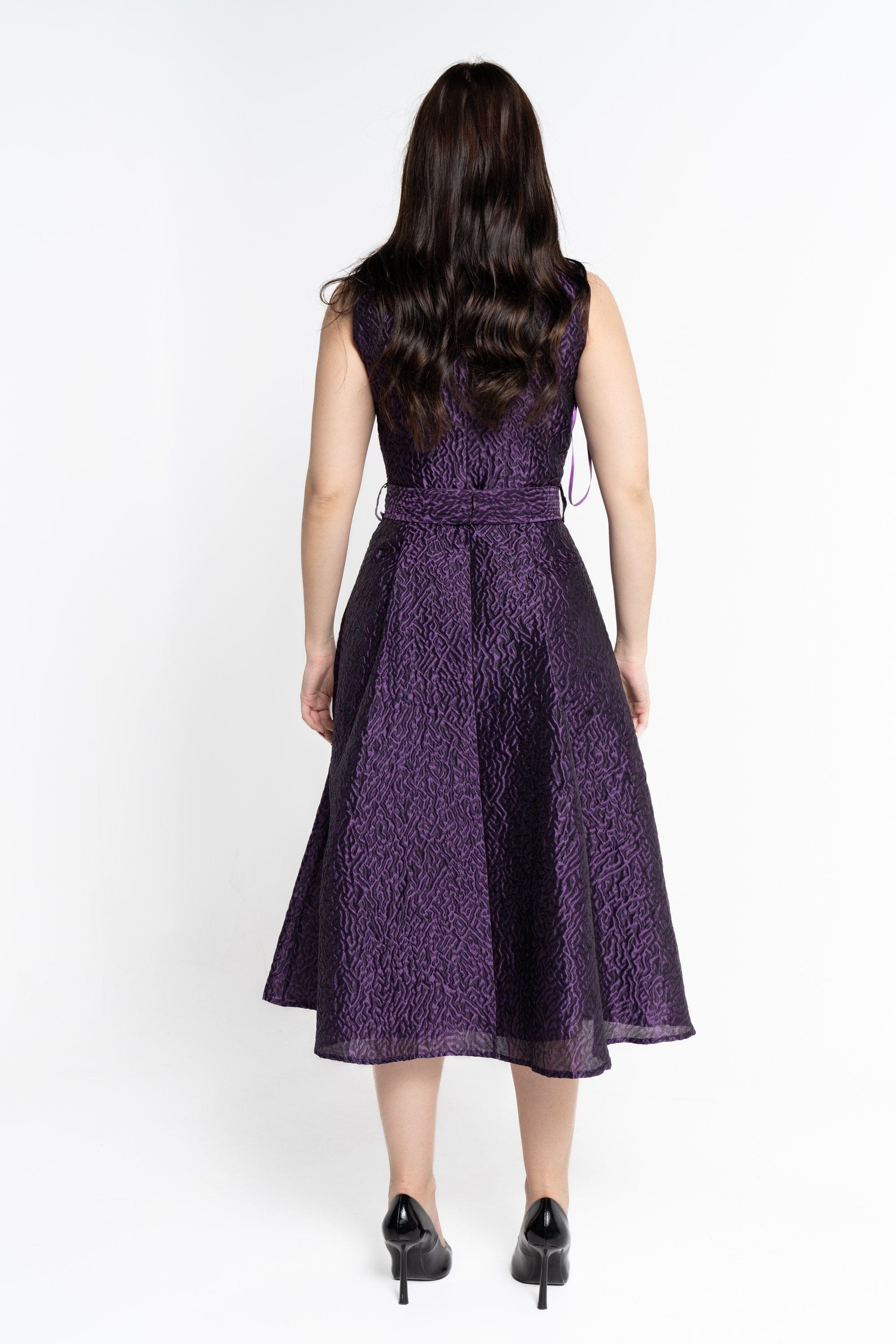 لو تبحثين عن فستان للحفلات يلفت الأنظار، هذا الفستان البنفسجي رائع لخزانة المناسبات. مصنوع من بوليستر 100% والبطانة أيضاً بوليستر 100% لثبات اللون وسهولة العناية. بقصة A مريحة وطول ميدي يمنحانك أناقة متوازنة: ليس طويلاً جداً ولا قصيراً، مناسب للحركة والرقص. النقشة مبطنة ومطرّزة بارزة تضيف لمسة فخمة تبدو أنثوية ومميزة. ياقة القميص تضيف طابعاً مرتباً بينما التصميم بلا أكمام يبرز الذوق الشبابي. يُغلق بحزام مرفق يحدد الخصر ويمنحك شكلًا أنثوياً واضحاً. الفستان خفيف إلى متوسط السمك ومناسب لكل المواسم للحفلات أو السهرات المسائية. ستحبين كيف يتحرك معك وكيف يبرز تفاصيل الخياطة البارزة، خيار عملي وأنيق لمناسباتك الخاصة. اعثري على مقاسك في فاشن السعودية وأضيفي هذه القطعة المتنوعة إلى خزانة ملابسك اليوم.