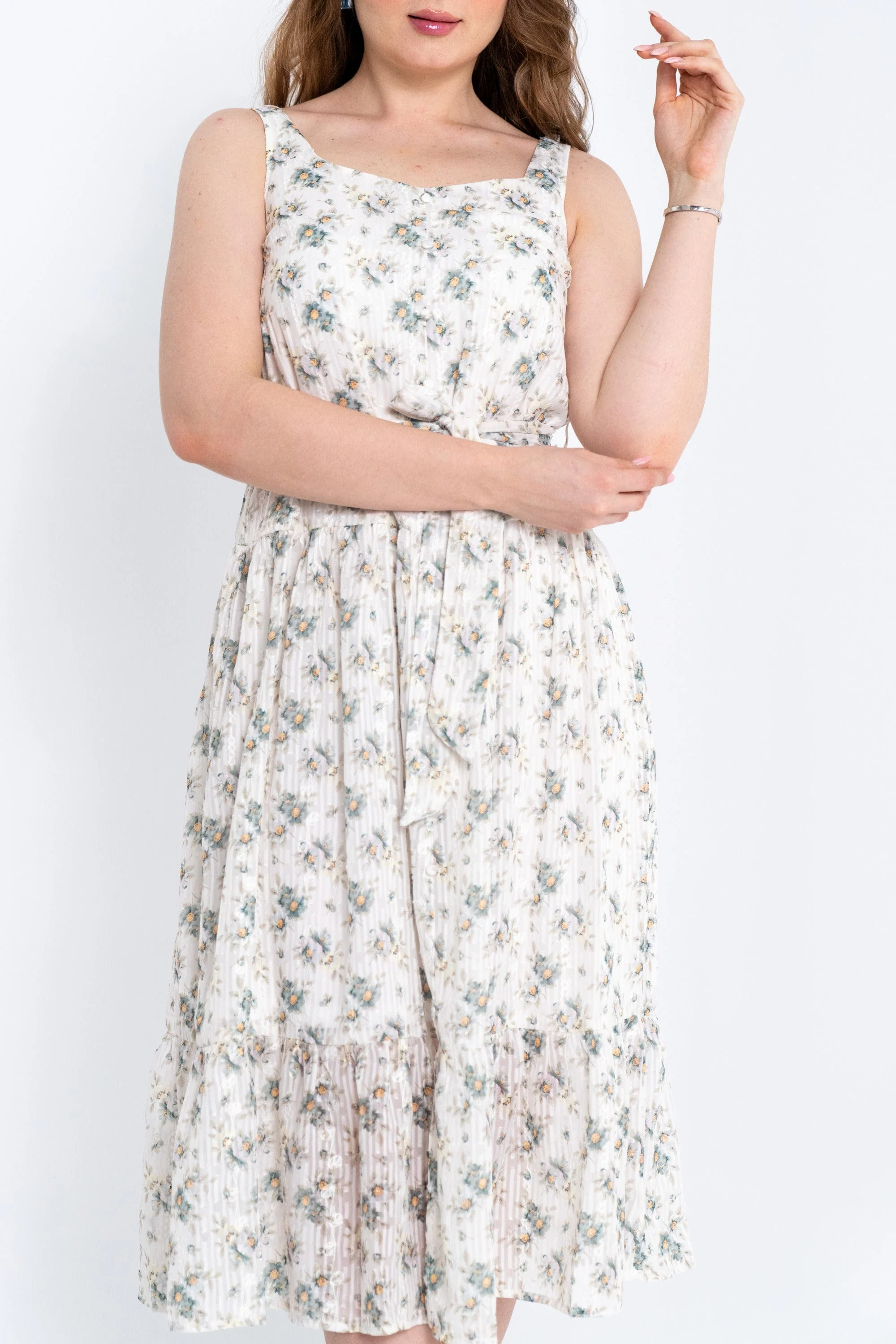 تخيلي فستاناً ميدي بلمسة أنثوية يرافقك طوال الصيف؛ هذا الفستان بقصة A ونقشة زهور متعدد الألوان يمنحك مظهرًا منعشًا ورومانسيًا. خامته بوليستر 100% خفيفة ورفيعة، لذلك ستشعرين بالراحة في الأيام الحارة، والفستان بدون بطانة ليزيد التهوية. ياقة مستديرة وتصميم بلا أكمام يبرزان كتفيك بأسلوب بسيط وأنيق. الحزام المرفق يحدد الخصر بسهولة ويمنحك إطلالة متجددة سواء تركته فضفاضاً أو مربوطاً. لا توجد جيوب، ما يجعل الخطوط ناعمة ومنسابة. مناسب للخروجات الكاجوال، نزهات القهوة، أو لقاءات مسائية خفيفة. ستحبين كيف يتحرك معك ويتماشى مع صندل مسطّح أو حذاء بكعب منخفض لإطلالة نهارية أنيقة. اعثري على مقاسك في فاشن السعودية وأضيفي هذه القطعة المتنوعة إلى خزانة ملابسك اليوم.