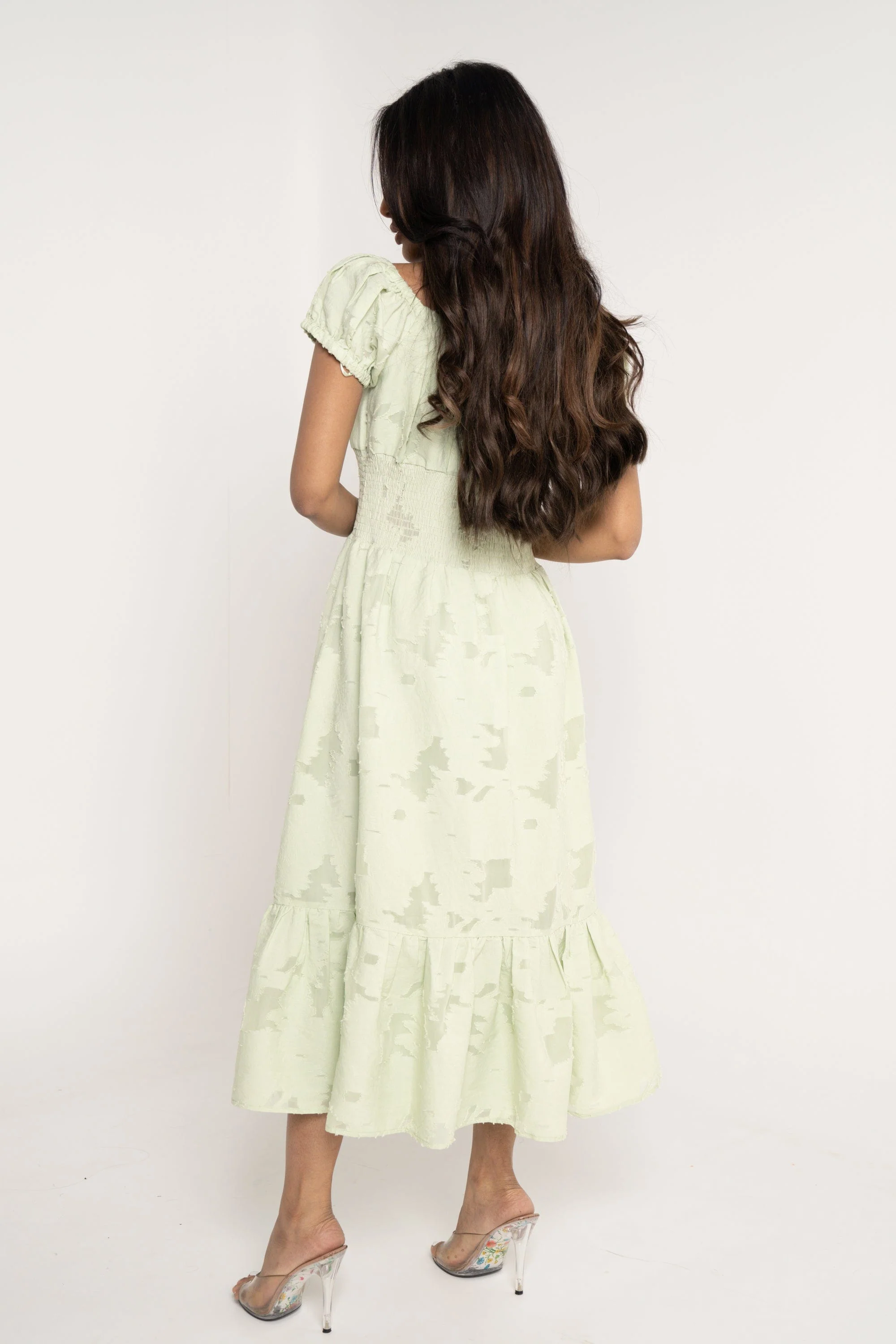 عندما تبحثين عن فستان مريح وأنيق للخروجات اليومية فهذا الفستان رائع. مصنوع من قماش بوليستر 100% بسماكة متوسطة، خفيف بما يكفي لصيف معتدل ومناسب أيضاً للتنسيق مع طبقات خفيفة في المواسم الأخرى، مع عدم وجود بطانة داخلية لمزيد من الراحة والتهوية. قصة A تمنحه اتساعًا لطيفًا من الخصر إلى الأسفل، وياقة مربعة تضيف لمسة أنثوية وعصرية، بينما الكم القصير يناسب الأيام الدافئة. بطول ميدي ولونه أخضر فاتح سادة، الفستان مثالي للخروجات الرومانسية والنزهات وكاجوال المكتب غير الرسمي. لا يحتوي على جيوب أو حزام، والقصة عادية تناسب المرأة البالغة التي تبحث عن مظهر أنيق وغير رسمي في كل المواسم. اعثري على مقاسك في فاشن السعودية وأضيفي هذه القطعة المتنوعة إلى خزانة ملابسك اليوم.