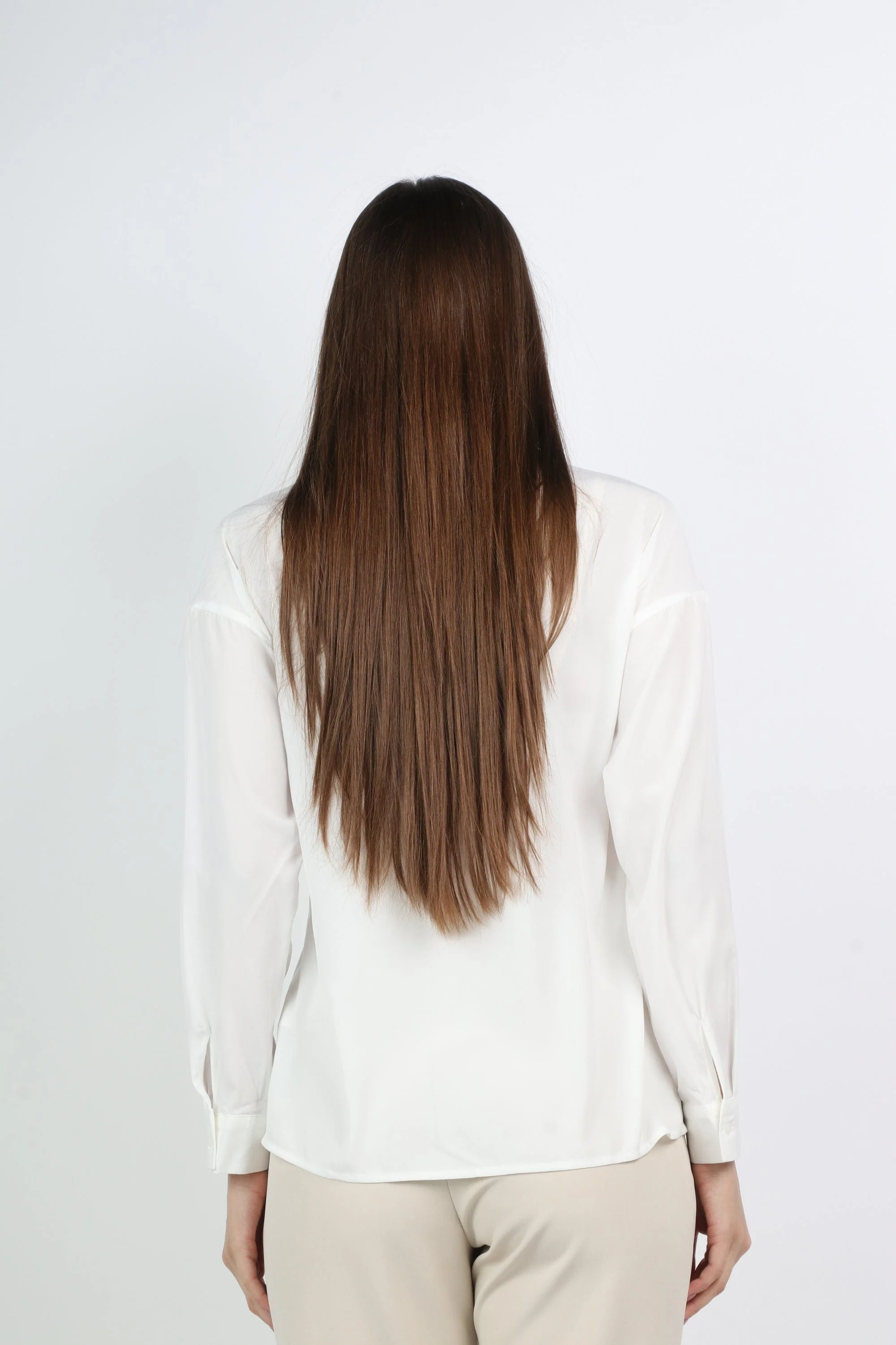 بلوزة بأزرار أمامية وياقة كم طويل نسائي