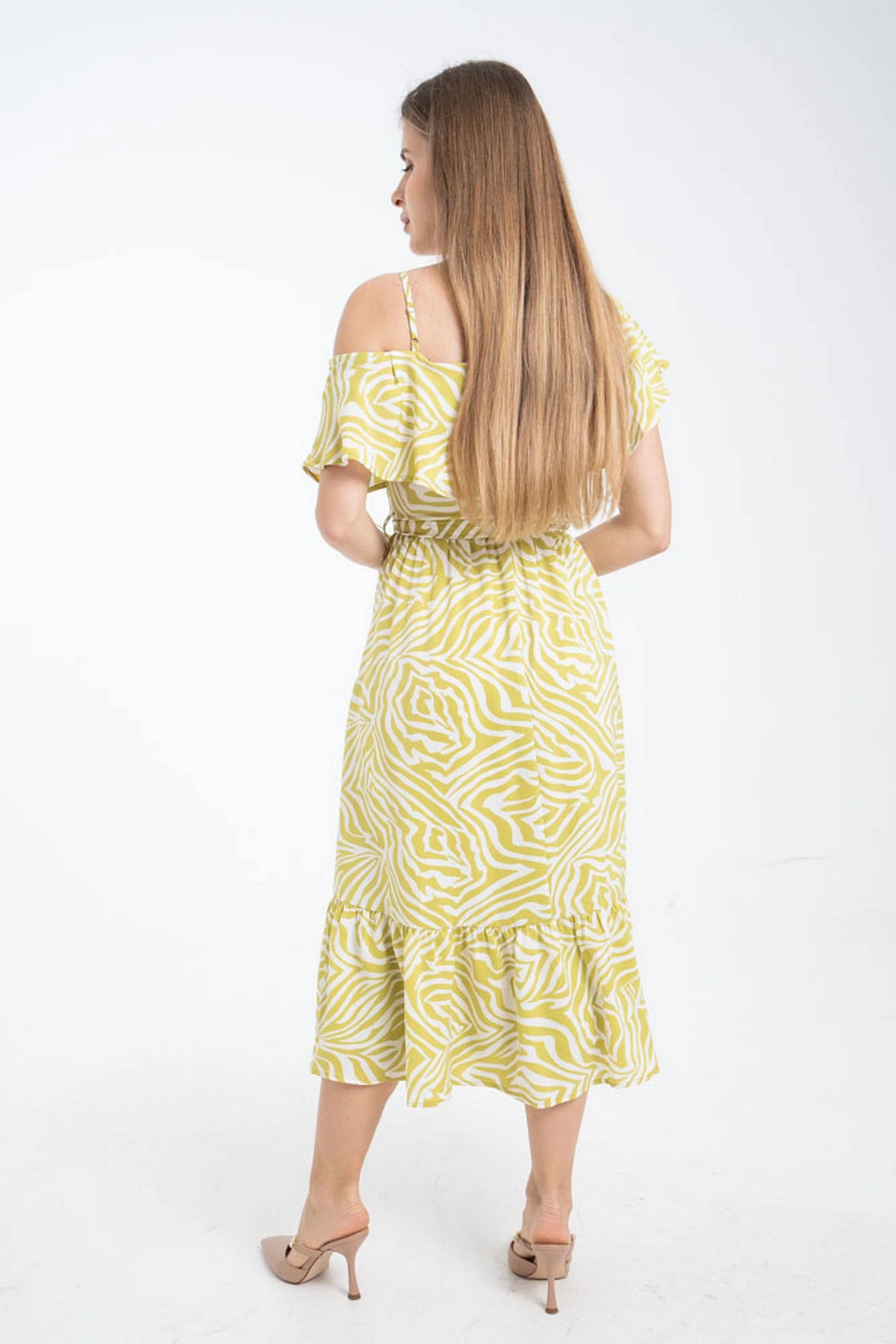فستان ميدي مخصر كتف وكتف