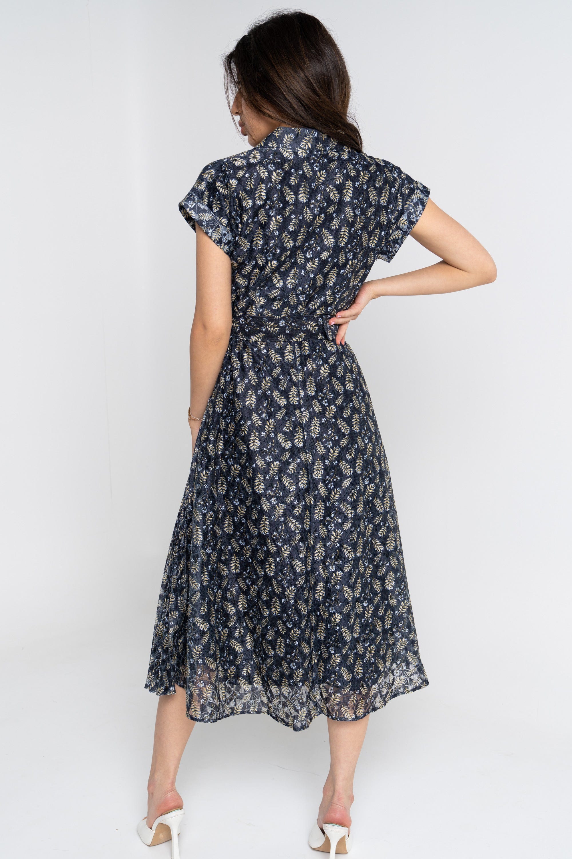 فستان ميدي بأكمام قصيرة بحزام خصر