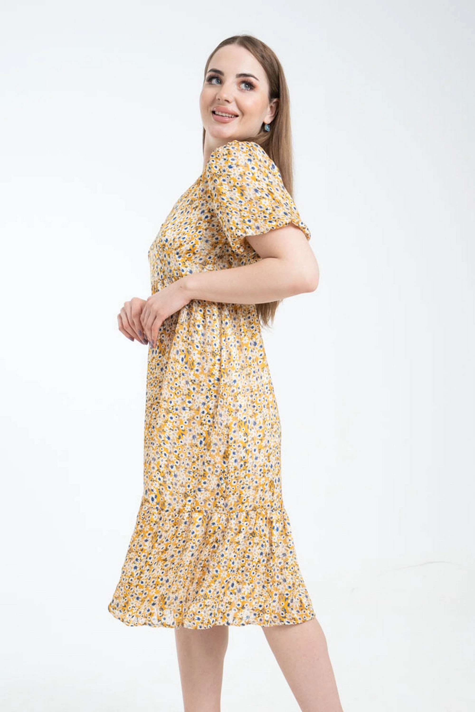لو تبحثين عن فستان مريح وأنثوي للخروجات اليومية، فهذا الفستان الأصفر بقصة A خيار رائع. مصنوع من بوليستر 100% بسمك متوسط يناسب الربيع والخريف، يعطي شعور خفيف لكنه متماسك ويحافظ على نقشة الزهور المبهجة. الطول ميدي وياقة V تبرز الرقبة بطريقة بسيطة وأكمامه القصيرة تمنحك حرية الحركة. التصميم بقصة عادية يضمن مقاسًا مريحًا دون تكلف، وبدون جيوب أو حزام لظهور أنيق ونظيف. مناسب للخروجات الكاجوال واللقاءات العفوية، ستحبين كيف يتحرك الفستان معك ويعطي طابعًا رومانسيًا دون مبالغة. فستان عملي ومشرق ينسجم مع إطلالات النهار والمساء البسيطة، مثالي لخزانة ملابسك الموسمية. اعثري على مقاسك في فاشن السعودية وأضيفي هذه القطعة المتنوعة إلى خزانة ملابسك اليوم.