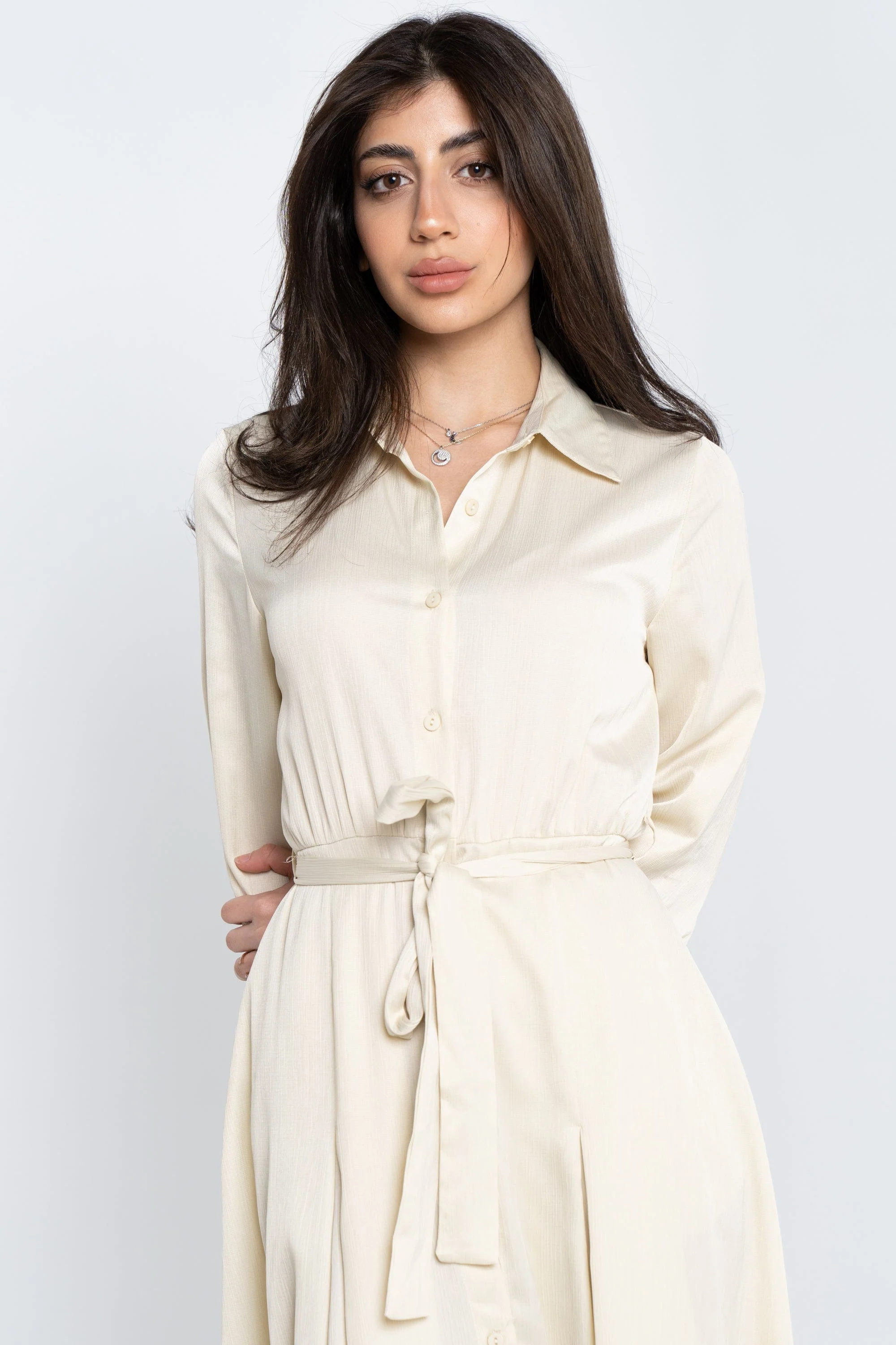 لو تبحثين عن فستان بيج عملي وأنيق لكل يوم والعمل، هذا الفستان خيار رائع. من خامة بوليستر 100% التي تتحمل الغسيل وتقاوم التجاعيد، ستلاحظين سهولة العناية به وطول عمره. بقصة A مريحة وطول ميدي يجعلان الحركة سلسلة ومناسبة للجلوس والمشي، وياقة قميص تضيف لمسة رسمية بينما الأكمام كم ثلاثة أرباع تمنح حرية للحركة. الفستان سادة ويغلق بأزرار مع حزام مرفق لتحديد الخصر حسب رغبتك؛ بدون جيوب وبدون بطانة، بسماكة متوسطة تناسب كل المواسم. مثالي للخروجات الكاجوال والمظهر الرسمي المكتبي، وستحبين كيف يتحرك معك الطول الميدي ويمنحك إطلالة متزنة ومريحة. اعثري على مقاسك في فاشن السعودية وأضيفي هذه القطعة المتنوعة إلى خزانة ملابسك اليوم.