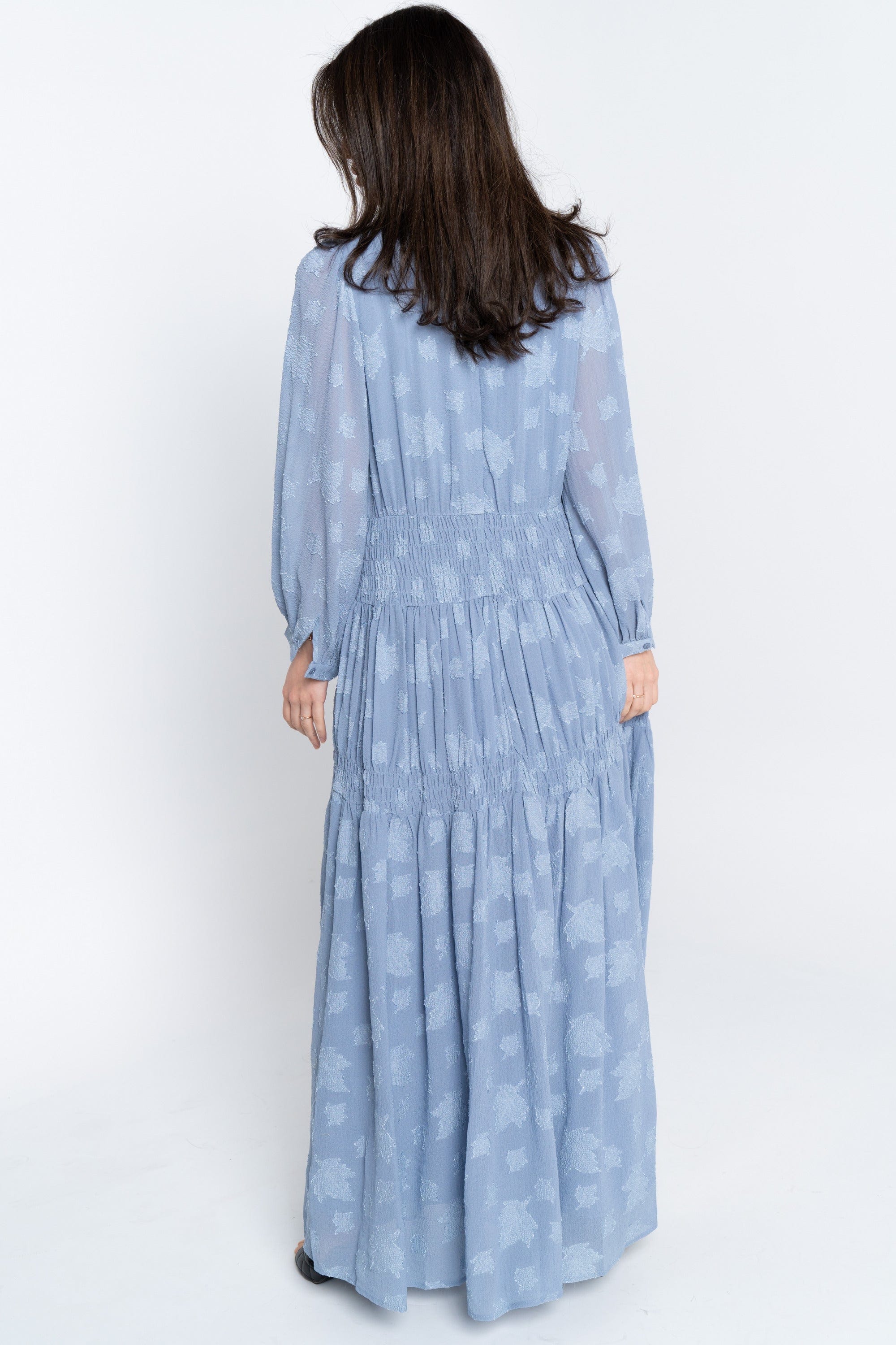 فستان طويل مع كسرات بالطول بأكمام طويلة
